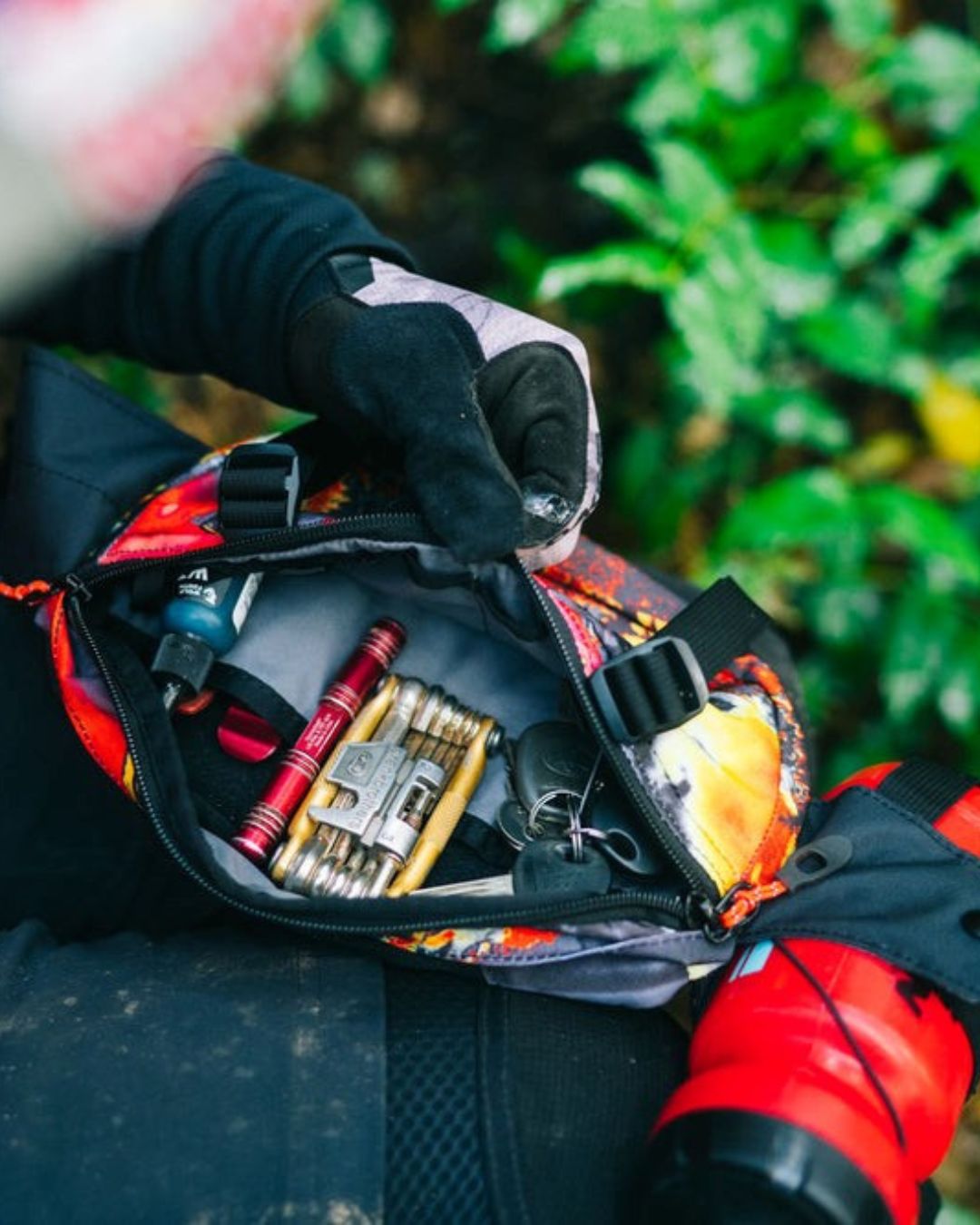 - Túi được trang bị một ngăn chính với khóa kéo chắc chắn, cho phép người dùng dễ dàng cất giữ và lấy đồ khi cần. Bên trong ngăn chính còn được bố trí các ngăn nhỏ, giúp phân chia đồ đạc gọn gàng và khoa học. Nhờ đó, người dùng có thể dễ dàng tìm thấy những món đồ nhỏ như chìa khóa, dụng cụ sửa xe hoặc tiền mặt mà không cần phải lục tìm mất thời gian. Có một ngăn riêng được lót lớp vải mềm nhằm bảo vệ điện thoại hoặc kính mắt khỏi trầy xước.